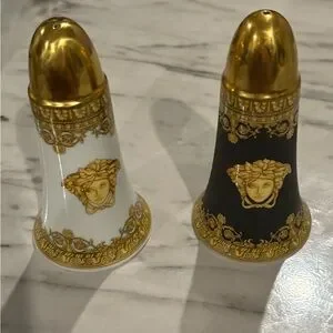Authentic Versace salt and pepper shakers. Never used. NO DAMAGE. I love baroque bianco porcelain. In great condition like new never used designer salt and pepper shakers