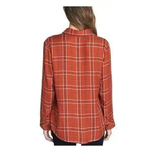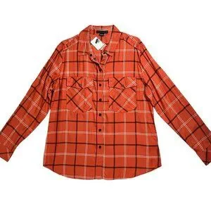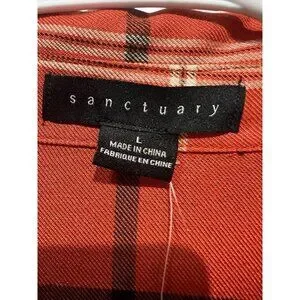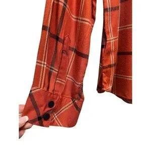Sanctuary Women Large Plaid Orange Pocket Boyfriend Shirt Top Button NWT