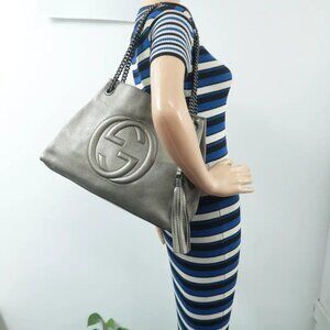 100% Authentic GUCCI Soho Grey Leather Shoulder Bag 533-11424