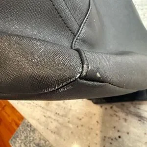 This stylish shoulder bag features a spacious tote design in sleek black, complemented by an adjustable strap for versatile wear. The minimalist aesthetic is enhanced by the contrasting textures of the fabric and leather, making it a perfect accessory for any occasion.