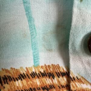 Condition: Pre-owned good. Pre-loved and in gently used condition. Light wear. A few small light colored stains on the front and one on the back.