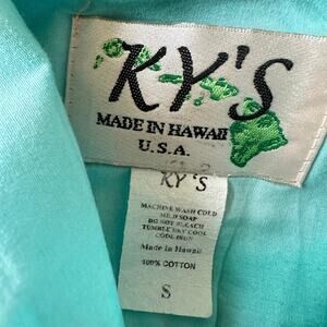Ky's Vintage Hawaiian Shirt Motorcycle Biker Short Sleeve Resort Vacation Blue S