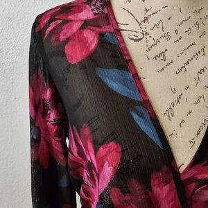 Alexa B Nites Dress Ladies Black Floral Maxi V-Neck Long Sleeve Size 8