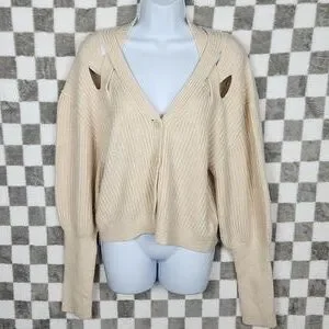 Express ribbed crop sweater cardigan women's Large oat NWT