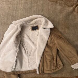 Banana Republic Tan Shearling Jacket with Cream Lining and Wide Collar
