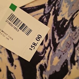 NEW WITH TAGS, NEVER WORN, BLUE/GRAY SWIRL PRINT TOP, PULL OVER, LONGSLEEVES AND PERFECT CONDITION!
