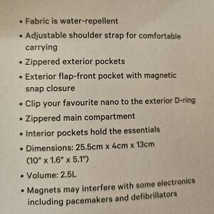 * Bag dimensions: 25.5cm x 4cm x 13cm (10" x 1.6" x 5.1")