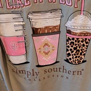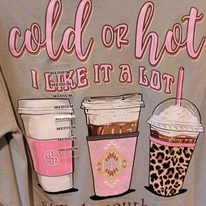 FINAL PRICE NWT Cozy Simply Southern olive 100% cotton long sleeve t-shirt. "Cold or Hot, I like it a Lot" Features a fun coffee cup graphic. Perfect for casual wear. Size Medium
