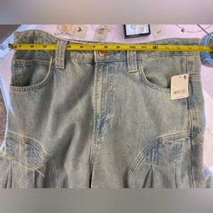 Free People Pandora Wide Leg Jeans We The Free Pleated Front Pocket LightIndigo