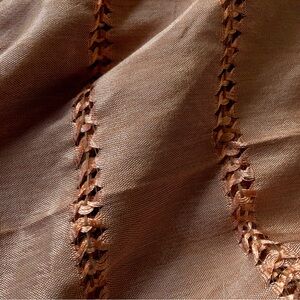 This elegant bronze scarf is perfect for adding a touch of sophistication to any outfit. The soft fabric and delicate fringe detail make it a versatile accessory for any occasion.