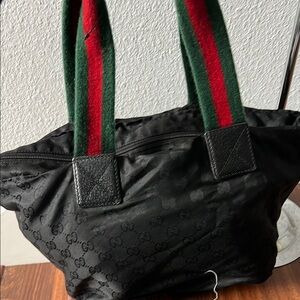 Stylish Gucci tote bag. Features iconic red and green straps. Perfect for everyday use. Preloved bag so kindly manage your expectations, no stains inside corner no rips or holes, zip working fine, strap is in okey use, offers are welcome