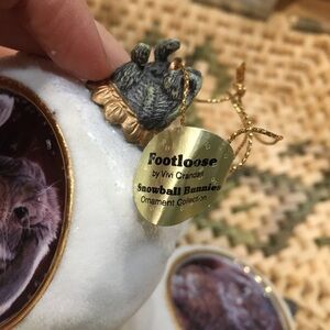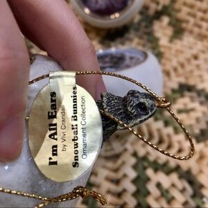 Vintage new vivi Crandall snowball bunnies Christmas ornaments. I’m all ears heirloom porcelain holiday ornaments white glitter. Rare