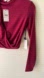New with tags. This ASTR the Label elegant berry colored crop top features a stylish draped front and long sleeves, perfect for any occasion. Add a touch of sophistication to your wardrobe with this versatile piece.
