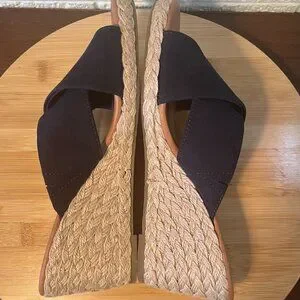Tommy Bahama Navy Blue Stacey Wedge Espadrille Slip-on Sandals. Very good pre-loved condition! No flaws; clean.