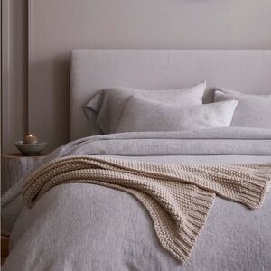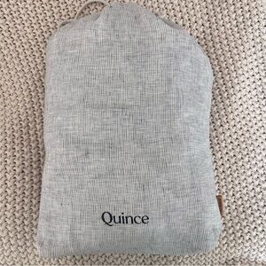 NWOT QUINCE European Linen Duvet Cover Set Grey/White Mini Pinstripe/ Full/Queen