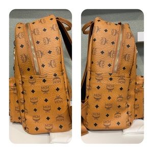 MCM Medium Stark Visetos Studded Logo Cognac Canvas Backpack