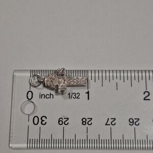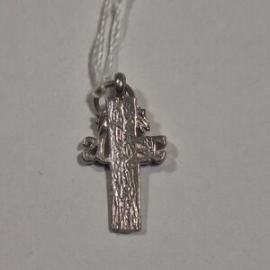 This vintage pendant charm is crafted from sterling silver (925) and features a Jesus cross design, making it a religious-themed piece. The pendant shape is a cross, and it weighs 1.6g with a size of 1 inch. The style of the pendant is both a pendant and a charm, adding versatility to how it can be worn. With no main stone, the focus is on the intricately designed cross, making it a meaningful and timeless piece of jewelry