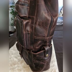 Stylish and durable brown leather backpack for men. Perfect for daily use and travel.