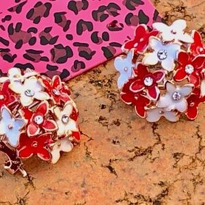 Betsey Johnson Enamel Flower Cluster Pierced Earrings