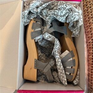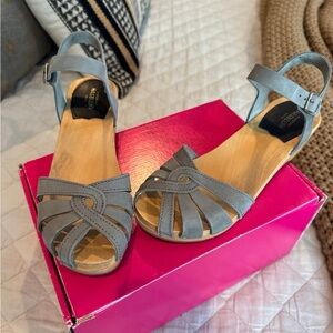 Swedish Hasbeens Gray Nubuck Debutant Low Sandal Clogs Shoes 38/7.5 Rare