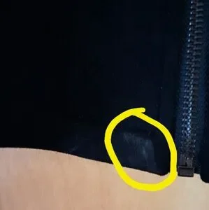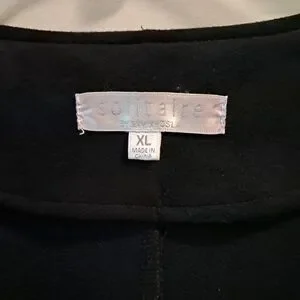 Elegant black faux suede jacket perfect for any occasion. Features a sleek fitted design with a comfortable fit. Small spot at bottom by the zipper.
