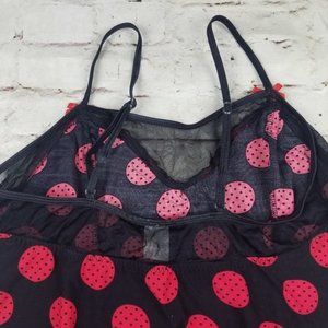 Studio Donatella Chemise Robe Set Red Black Nightgown Sexy Pajamas Polka Dot L