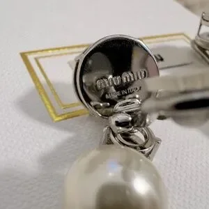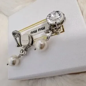 Miu Miu Crystal and Pearl Drop Clip on Earrings