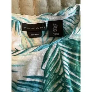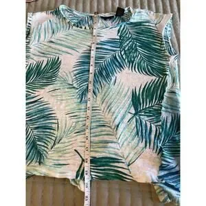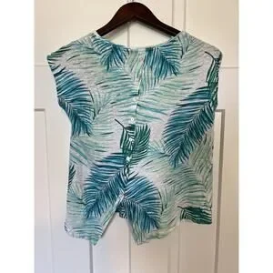 Tahari Women's Linen Top Medium Button Back Palm Leaves