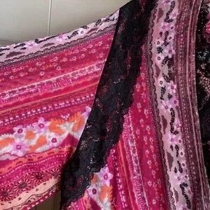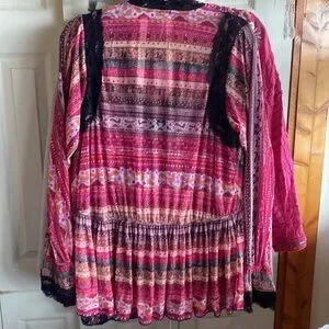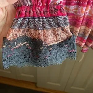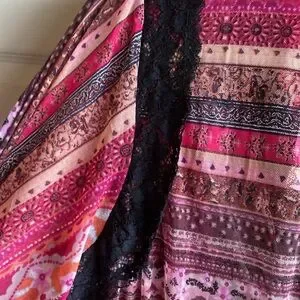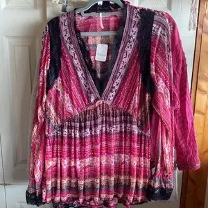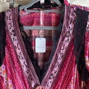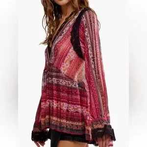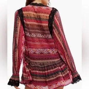 Free People NWT Natalie Bohemian Inspired Print Lace Long Sleeve with Ruffle Cuff, Vneck Slip/Tunic Top