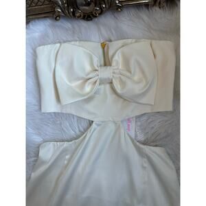 FLORA BEA Kayle Strapless Mini Bow Dress In Whitebridge Small NEW