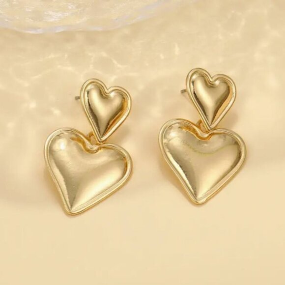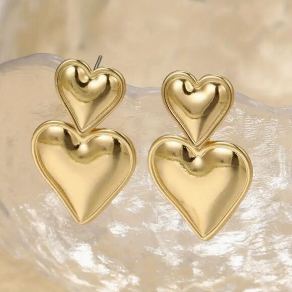 NEW Jackie Gold Double Heart Drop Earrings Pierced