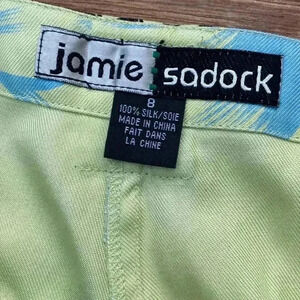 Jamie Sadock women's 100% silk yellow and blue floral crop capri pants size 8