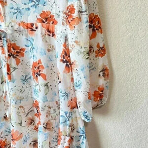 To My Lovers Sheer Floral Dress Women's Size Small Long Sleeve White Blue Orange