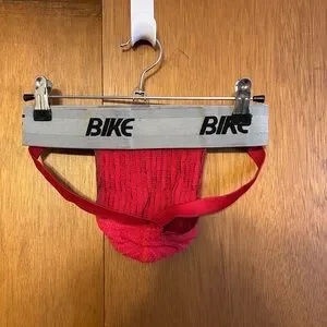 Classic/Original Bike Athletic Supporter/Jock Strap. Soft microfiber/cotton pouch. Discontinued/Dead-stock. 2” waistband, worn but great condition.