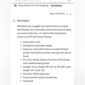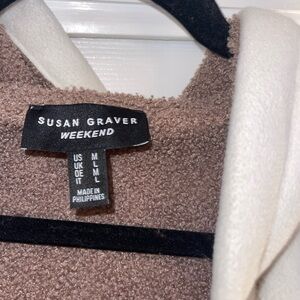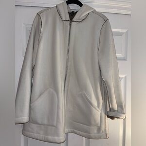 Susan Graver Weekend Reversible Polar Fleece & Sherpa Coat 10-12 Ivory/Clove