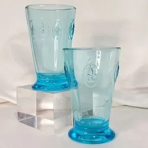La Rochere Blue Fleur de Lys Glass Tumblers, set of 2. These classy tumblers have no signs of ever being used. Approx Size: 5.5" tall