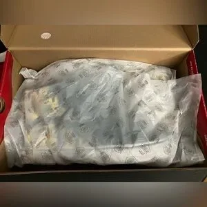 Joking aside - they are brand new and never worn! The box does show some wear from normal storage, but it’s fully intact without tears or large dents.