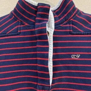 Vineyard Vines 1/4 Botton Pullover Men's Large Striped Long Sleeve Sweater running small like size medium