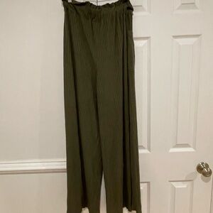 FREE PEOPLE MOVEMENT BLISSED OUT WIDE LEG PANTS CARGO GREEN RIBBED