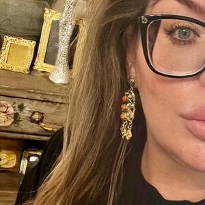 Golden dangle earrings featuring vibrant turquoise and coral accents. Perfect for adding a touch of color to any outfit. Vintage 1960-70s. Clip on.