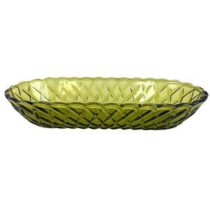 Vintage Indiana Glass Co Avocado Green Celery Dish Pretzel Pattern