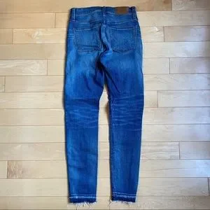Excellent condition Madewell 9” High Rise Skinny Jeans size 25. Denim is sturdy but stretchy. Distressed style with raw hem. Inseam is 27.5”.
