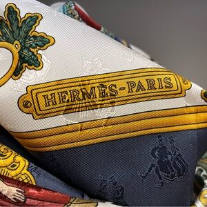 Gorgeous authentic Hermes Carrie 90 Joies d’Hiver silk jacquard holiday scarf