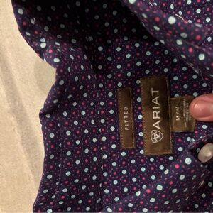 Elevate your wardrobe with this stylish purple polka dot button-up top. Perfect for any occasion.