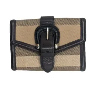Burberry Brown/Beige Nova Check Canvas and Leather Buckle Compact Wallet