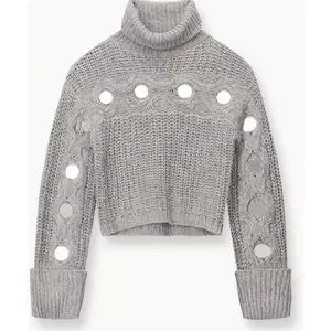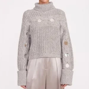 NWOT STAUD Vernacular Sweater Grey/Silver size XS chunky turtleneck $395