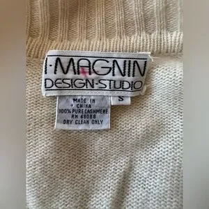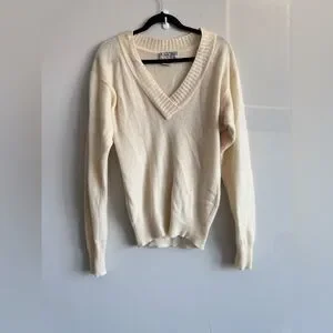 Vintage I. Magnin Cream Ivory Cashmere V Neck Knit Elegant Sweater