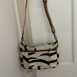 Myra jungle Jim zebra striped leather crossbody purse