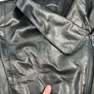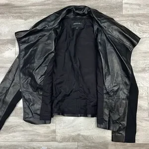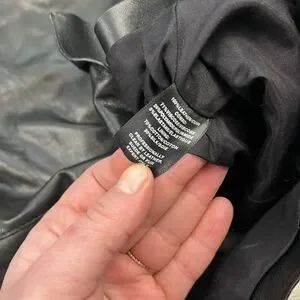 Features: leather outer with stretch panels, cotton silk blend lining, slight padding at shoulders