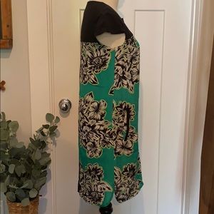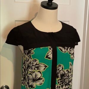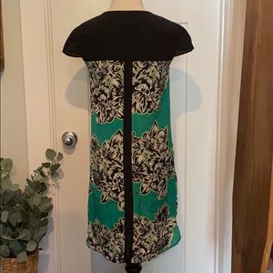 Anthropologie Maeve 100% silk cap sleeve 0 green black white mini pockets dress
